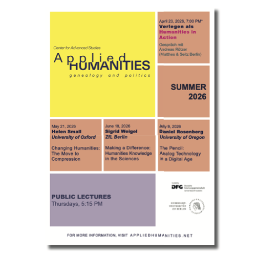“Applied Humanities: Genealogy and Politics” is a Center for Advanced Studies in the Humanities and Social Sciences funded by the German Research Foundation (DFG) and located at Humboldt-Universität zu Berlin.